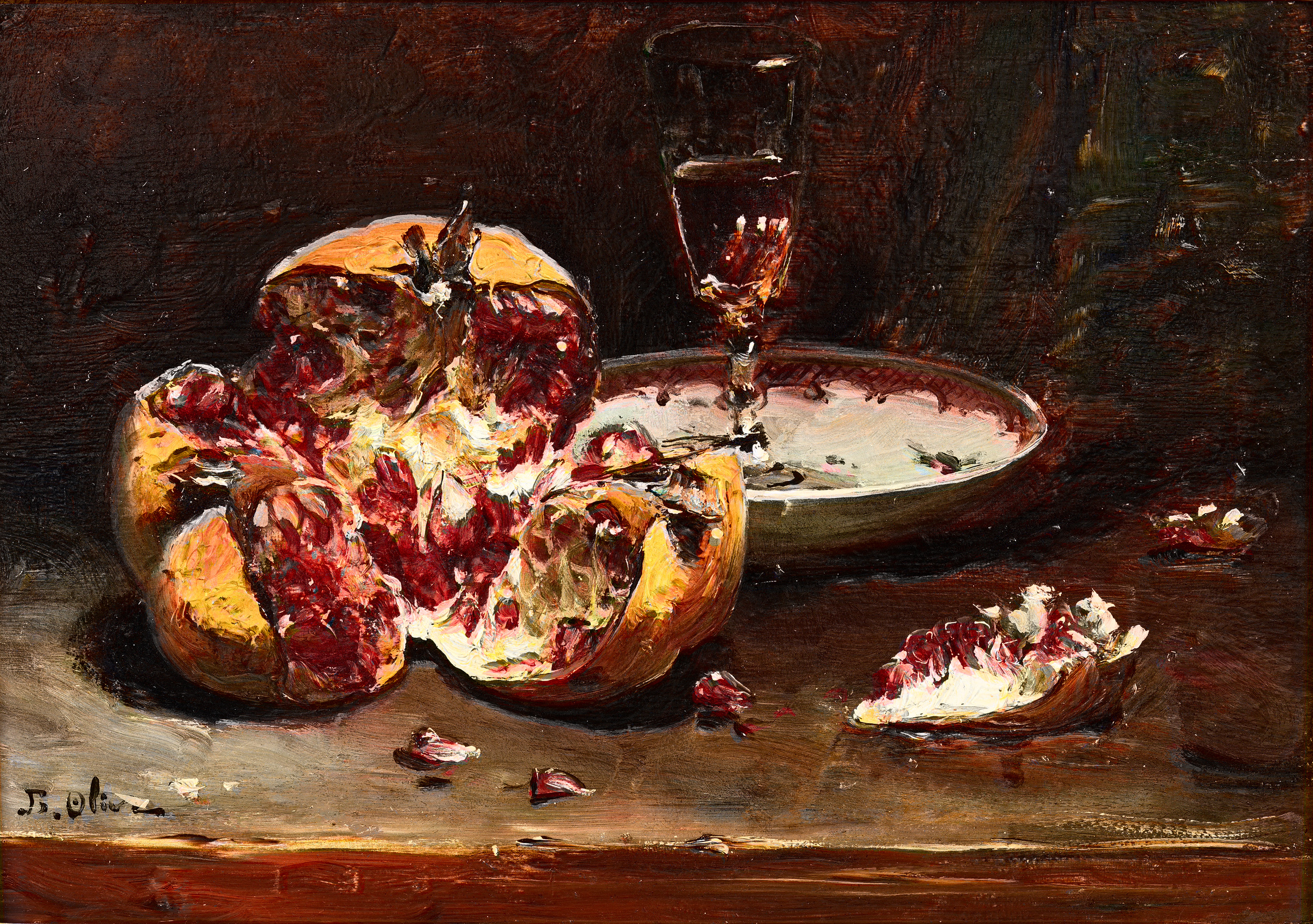 Oil on panel, signed lower left.