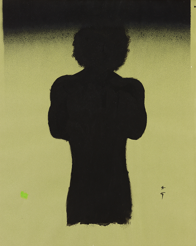 Gouache on colored paper, signed lower right.