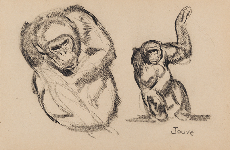 Esquisse pour une illustration parue dans l'ouvrage d'André Demaison, La comédie des animaux qu'on dit sauvages (Rombaldi, Paris, 1950), à rapprocher de l'illustration reproduite entre les p.120 et 121 et qui figure aussi dans l'ouvrage de Félix Marcilhac, Paul Jouve, Peintre sculpteur animalier (Editions de l'Amateur, 2005) à la p.288.