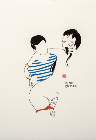 Encre et gouache sur papier, signée et datée en bas au centre